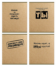 74677 Тетрадь 96 листов Надписи, в клетку без полей, на скрепке, 4 дизайна по 2 шт, внутренний блок офсет 60г, 92% белизна, обложка из мелованного картона, ВД-лак