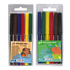 75048 Набор карандашей цветных деревянных 6 шт и набор фломастеров 6 шт, в блистере