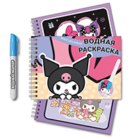 77451 Водная раскраска Kuromi с маркером, 5 рисунков, 12 страниц, размер 21*14 см, бумага 210 г, в индивидуальной ПВХ-упаковке