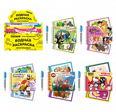 74598 Водная раскраска с маркером, 5 рисунков, 12 страниц, размер 21*14 см, бумага 210 г, 5 дизайнов в ассортименте, в индивидуальной ПВХ-упаковке, в дисплее 20 шт.