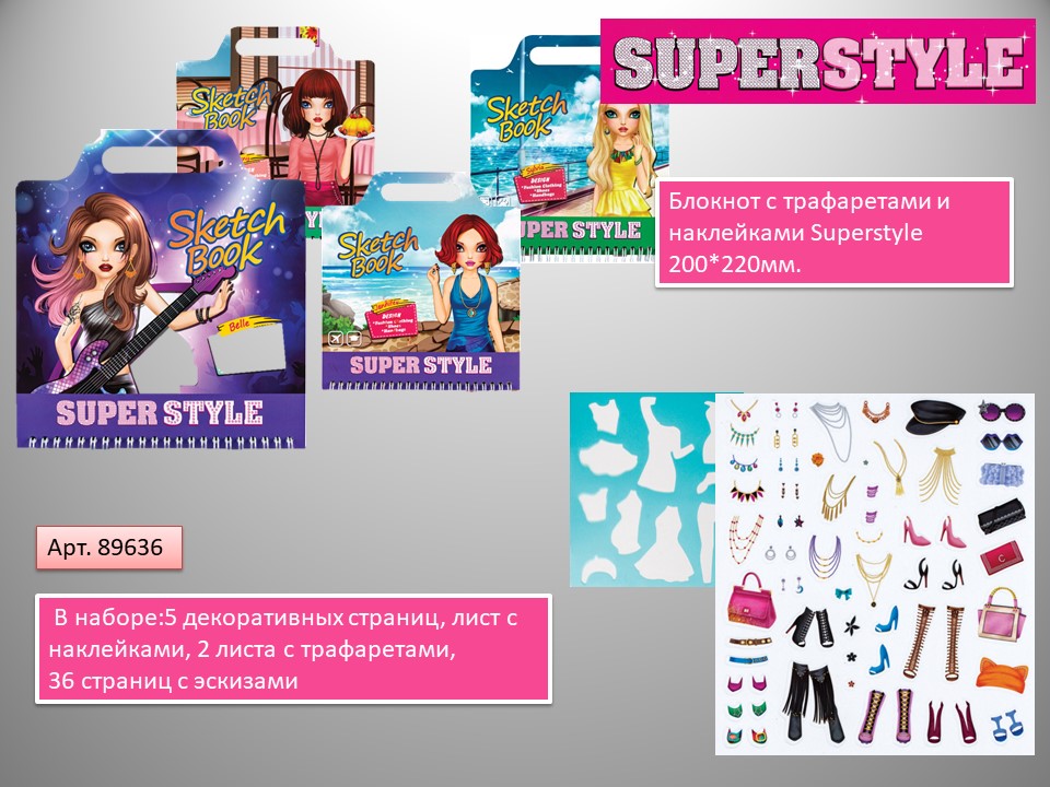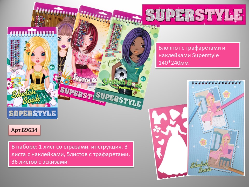 Блокноты «Super Style» подарят возможность каждой девочке раскрыть творческий потенциал, почувствовать себя настоящим художником – модельером. Фантазия и интерес – все, что понадобится для создания шедевров.
