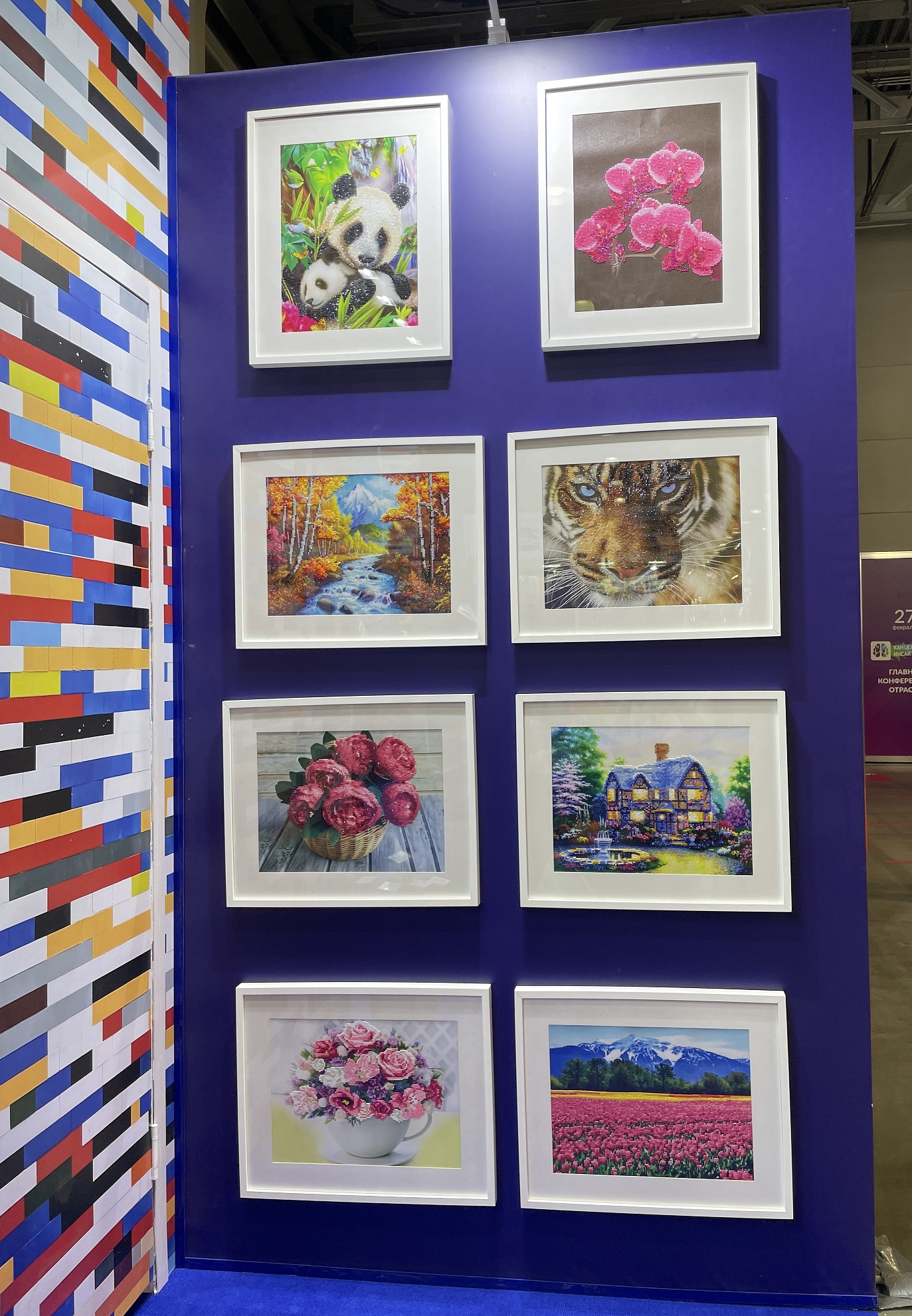 Творчество тоже не стоит на месте. В широком ассортименте картины по номерам и наборы алмазной мозаики для любого возраста. Предоставление личной коллекции картин алмазной мозаики Нашего руководителя регионального отдела продаж, Косаревой Галины Александровны становится традицией. Каждая работа, это не только приятное украшение стенда, привлекающее внимание посетителей, но и наглядный пример ассортимента коллекции.