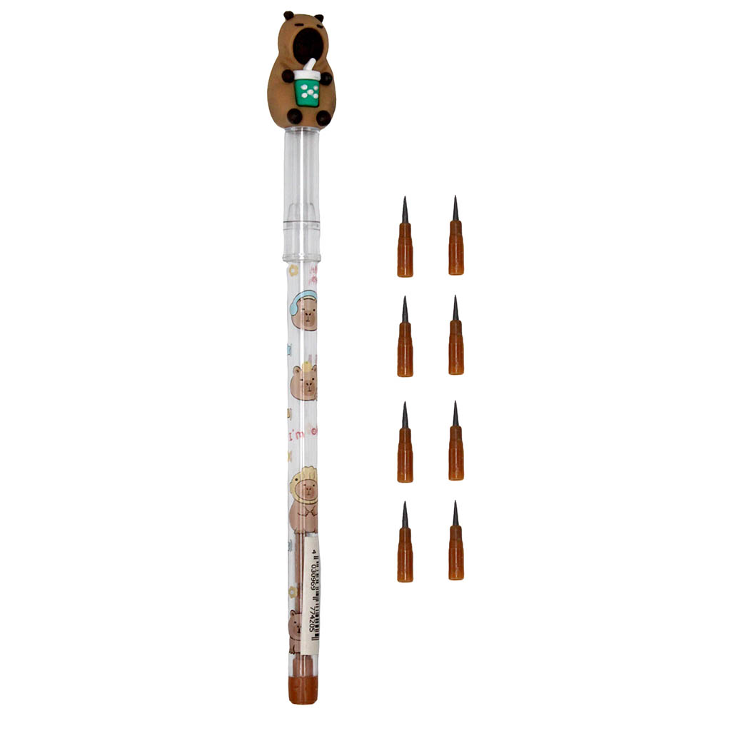 Карандаш Centrum "Капибара" универсальной твердости HB идеально подойдет для письма и черчения. Ударопрочный грифель не крошится и не ломается, создает ровные плавные линии, не деформируя бумагу. Карандаш представлен в пластиковом корпусе с фигурными дополнением. При израсходовании грифеля необходимо переставить пустой сегмент в нижнюю часть корпуса.