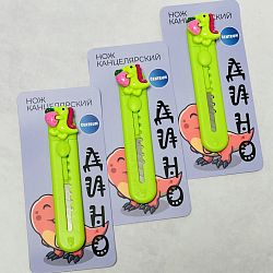 Благодаря компактным размерам, нож удобно носить c собой. Пластиковый корпус хорошо лежит в руке, а резиновая фигурка ничуть не утяжеляет изделие. Система блокировки обеспечивает комфортное и безопасное использование. Выдвижное лезвие изготовлено из нержавеющей стали, дополнено специальными метками, нанесенными с помощью лазерной гравировки, позволяющими производить точное и качественное обламывание. Ширина лезвия – 9 мм. Индивидуальная упаковка с подвесом.