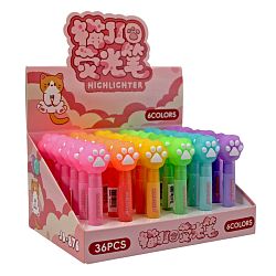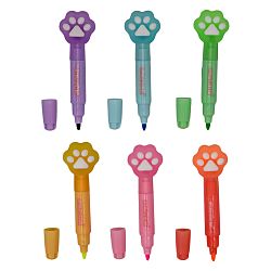 Маркер оснащен круглым и скошенным наконечником. Пластиковый корпус выполнен в цвет чернил, дополнен прорезиненной фигуркой, которую можно переставлять с колпачка на колпачок. Чернила не имеют резкого химического запаха, мгновенно высыхают, не отпечатываясь на обратной стороне. Устойчивы к выцветанию, выделенная область не теряет первоначальной яркости со временем. Цвета в ассортименте.