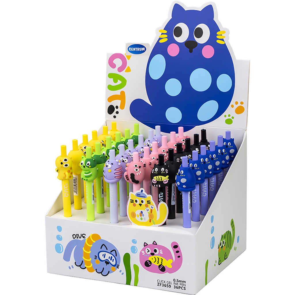 Гелевые ручки хорошо справляются со своими основными задачами, обладая всеми необходимыми характеристиками для комфортного письма. Изделия представлены в тонком круглом цветном корпусе с фигурным дополнением. Автоматический нажимной механизм обеспечивает плавную подачу стержня. Металлический наконечник диаметром 0,5 мм. создает четкие, не прерывистые линии, обеспечивая плавное и мягкое письмо. Цвет чернил – синий. Дизайн в ассортименте. Новинки представлены в картонной коробке, удобной для транспортировки и хранения. Для удобства розничных продаж и возможности выбора, упаковка трансформируется в демонстрационный стенд.