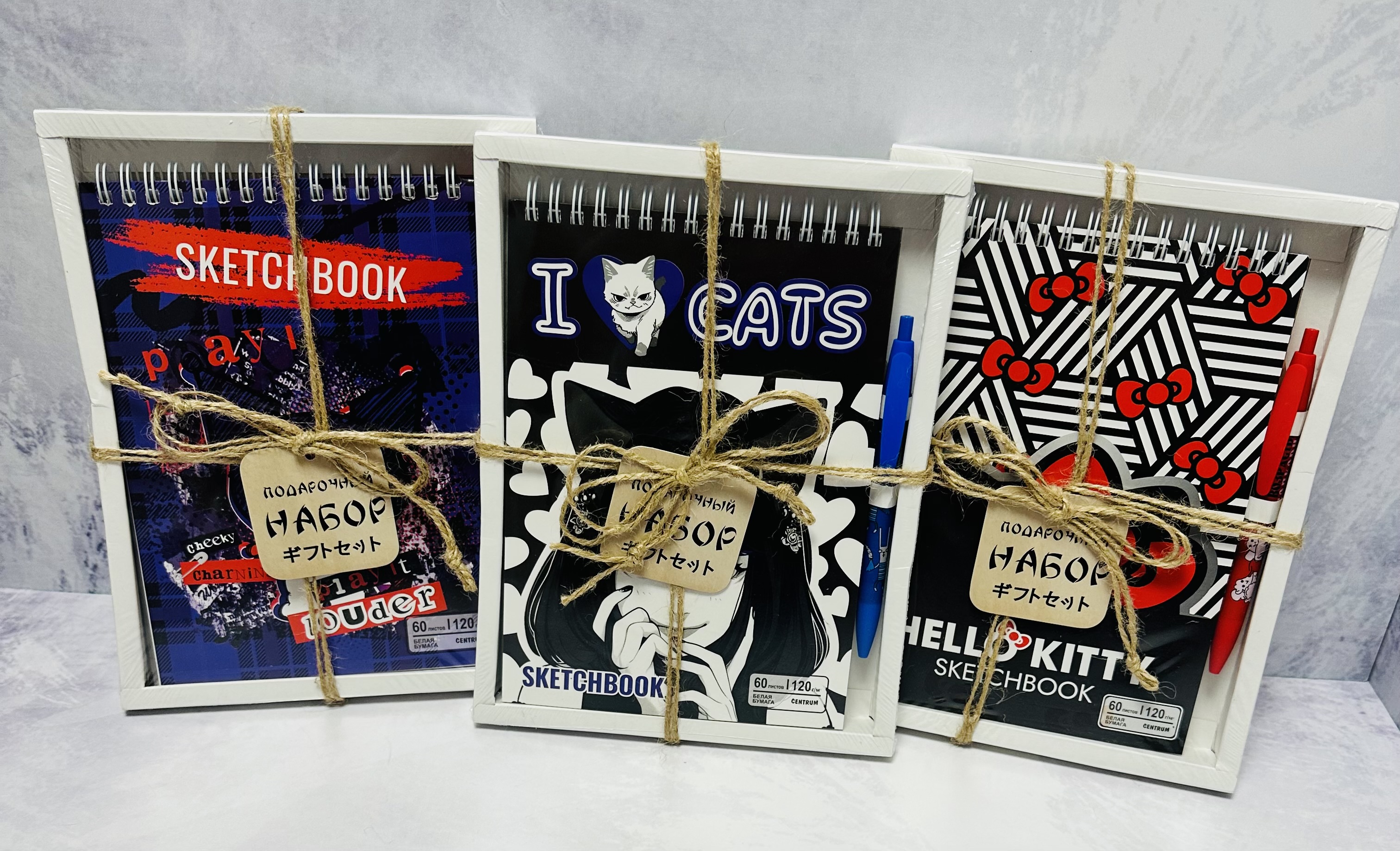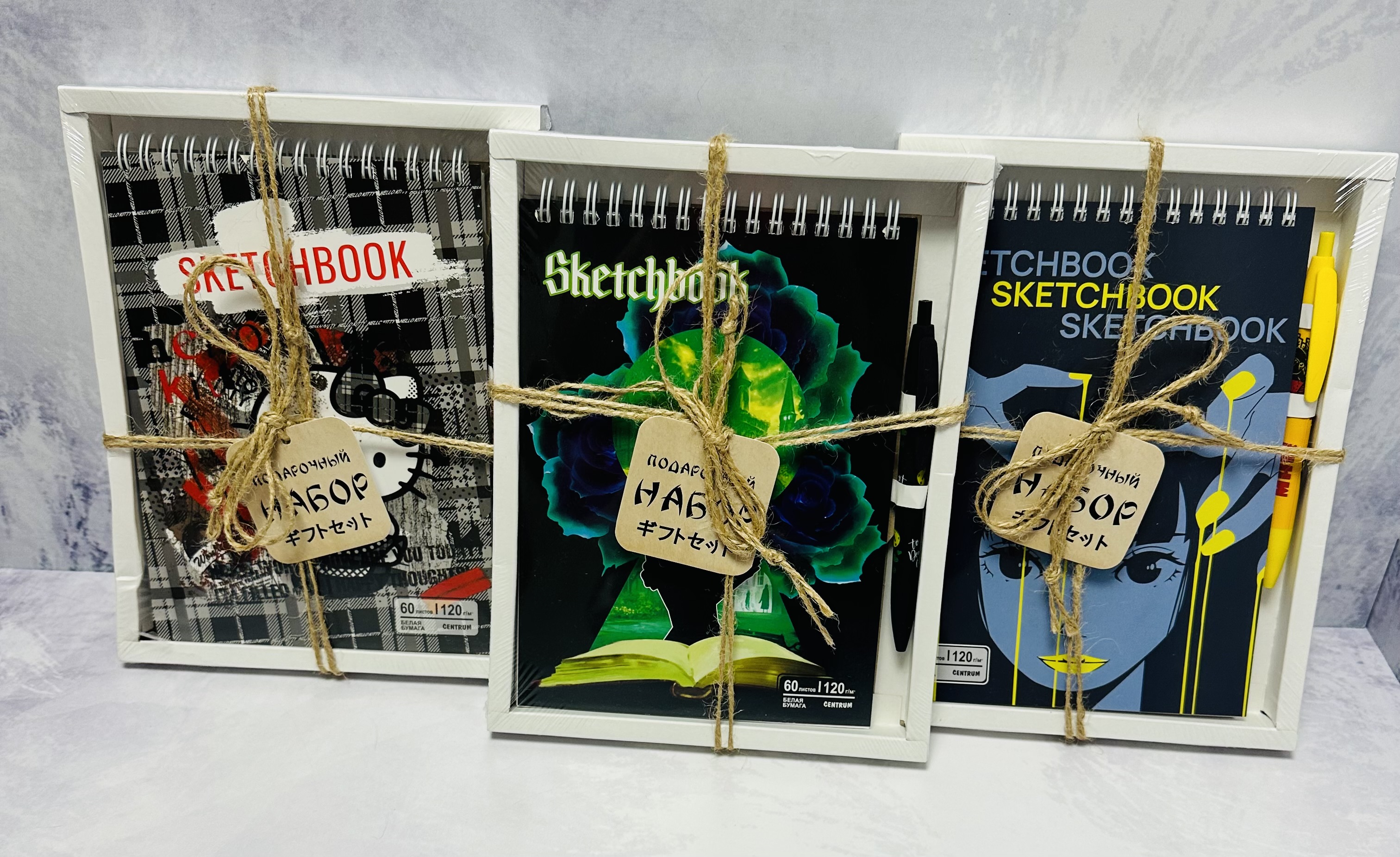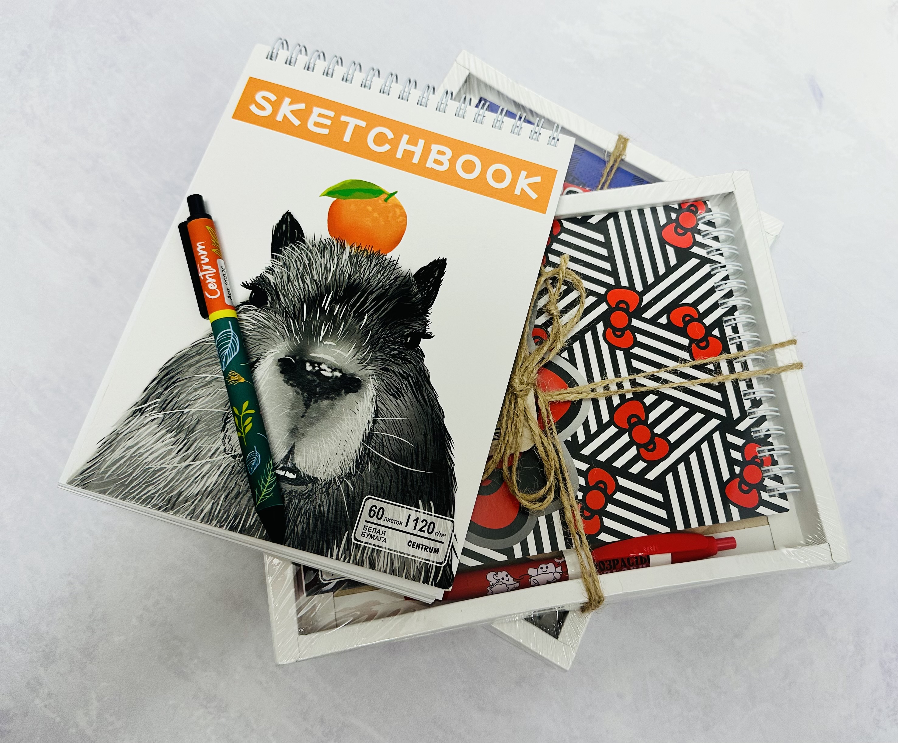 Подарочный набор, состоящий из скетчбука и ручки в стильной и лаконичной упаковке. Скетчбук на спирали наиболее удобного формата А5. Белая бумага повышенной плотности подойдет для рисования цветными карандашами и графитом, ручками и маркерами, пастелью и красками. Благодаря небольшому размеру, скетчбук всегда будет под рукой, а спиральное крепление блока позволит легко и просто переворачивать листы. Плотная жесткая обложка позволит использовать скетчбук в качестве планшета, если рядом не окажется твердой поверхности. Высокое качество цветопередачи обеспечивает яркое и четкое несение рисунка. Объем - 60 листов.