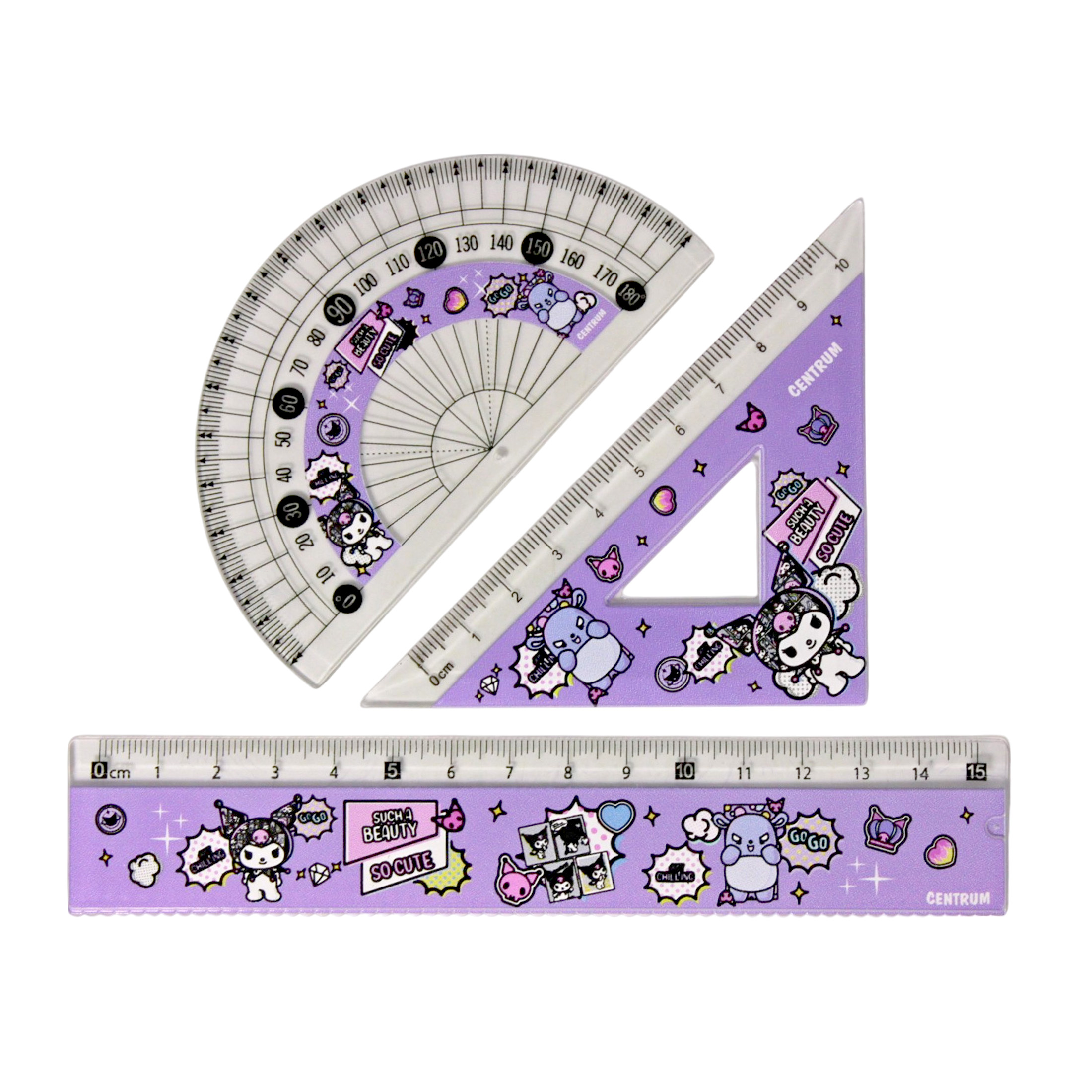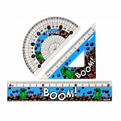 В наборе: линейка длиной 15 см. с волнистой стороной для выделения необходимых частей текста; треугольник длиной - 10 см; транспортир 180 градусов. Крашеная поверхность устойчива к выцветанию и деформации. Качественная маркировка обеспечивает яркое и четкое нанесение информации для более четкого измерения. Новинки представлены в ПВХ-конверте с подвесом.