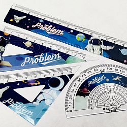 В наборе: линейка длиной 15 см. с волнистой стороной для выделения необходимых частей текста; треугольник 45 градусов и шкалой деления - 10 см; треугольник 60 градусов и шкалой деления - 10 см; транспортир 180 градусов. Крашеная поверхность устойчива к выцветанию и деформации. Качественная маркировка обеспечивает яркое и четкое нанесение информации для более четкого измерения. Новинка представлена в ПВХ – упаковке с подвесом.
