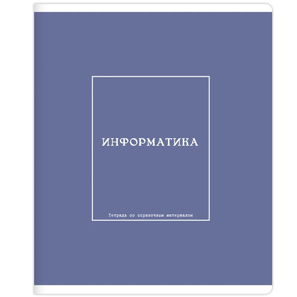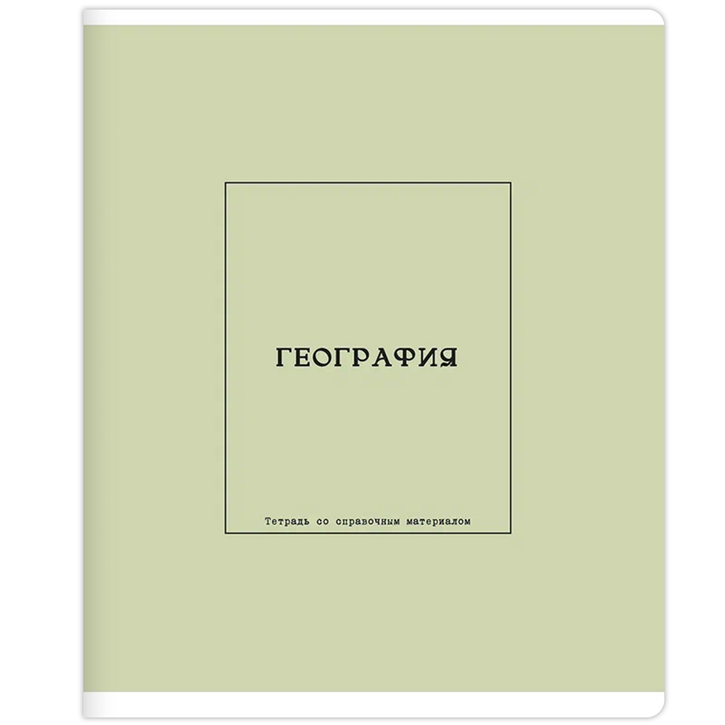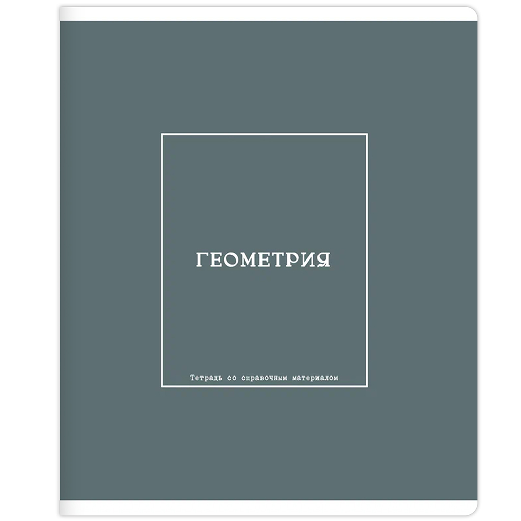 Внутренний блок с разлиновкой в клетку/ линейку с полями и обложка скреплены с помощью металлический скобы. В ассортименте 12 тетрадей (геометрия, география, алгебра, информатика, физика, обществознание, химия, биология, история, иностранный язык, литература, русский язык.) На внутренних частях обложек расположена справочная информация.