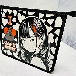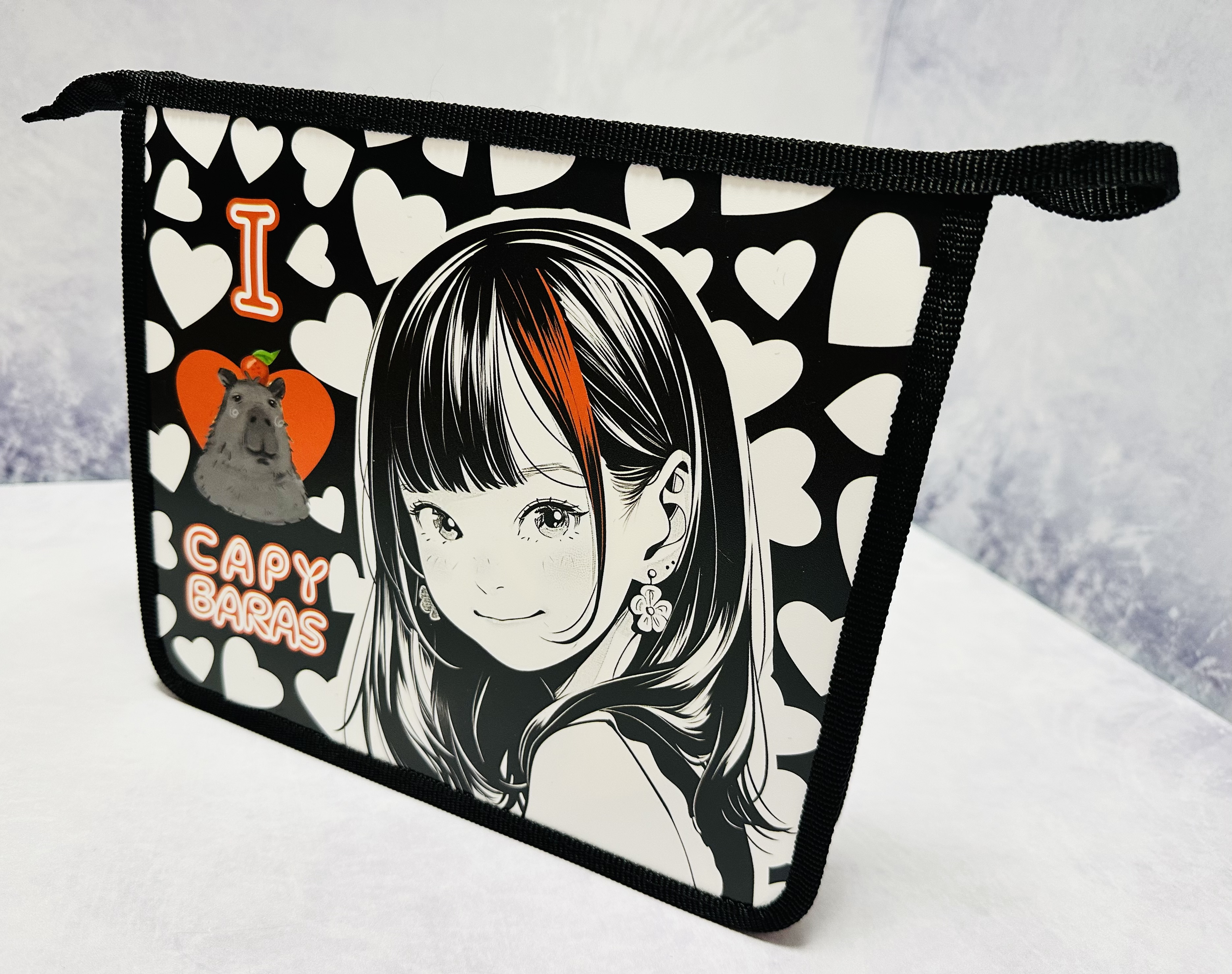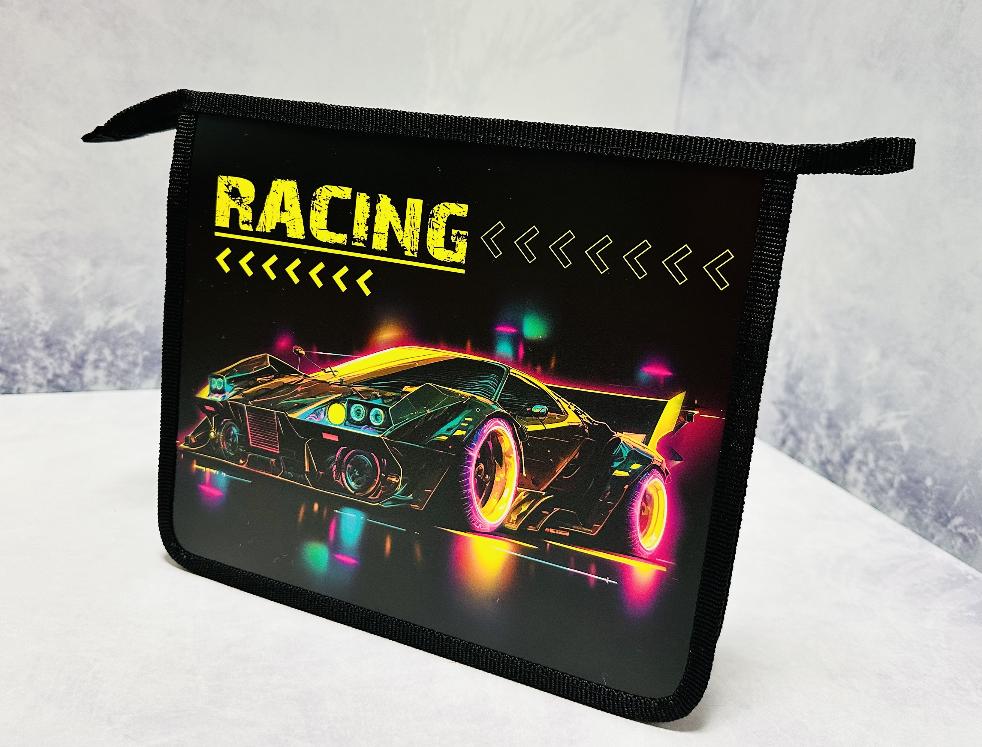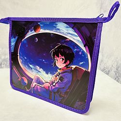 Изделия изготовлены из пластика, дополнены текстильной отделкой по краям. Имеется одно основное отделение на молнии. Полноцветная печать изображения обеспечивает качественное и четкое нанесение рисунка с обеих сторон папок, устойчивого к выцветанию и деформации. Формат – А5.