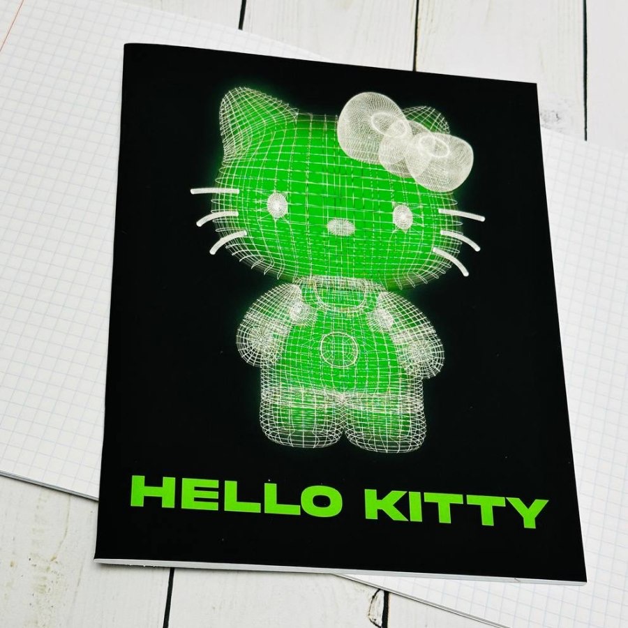Внутренний блок с разлиновкой в клетку с полями и обложка скреплены с помощью металлический скобы. Объем - 48 листов. Формат - А5.