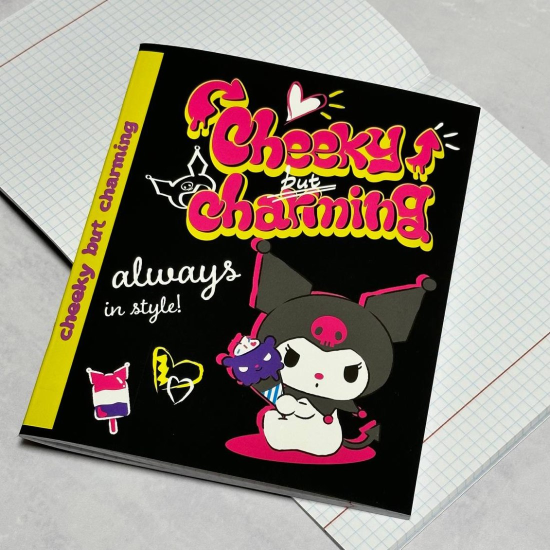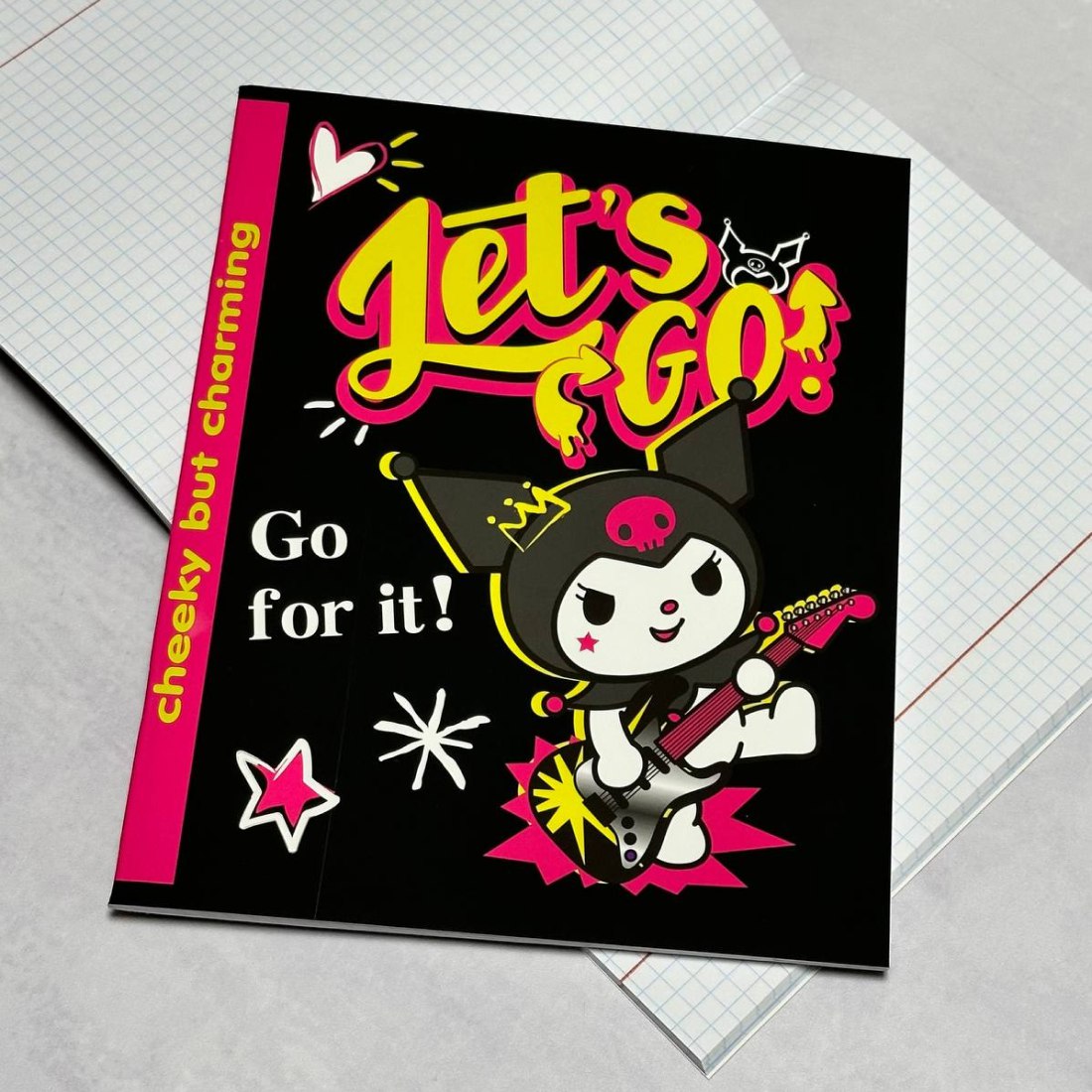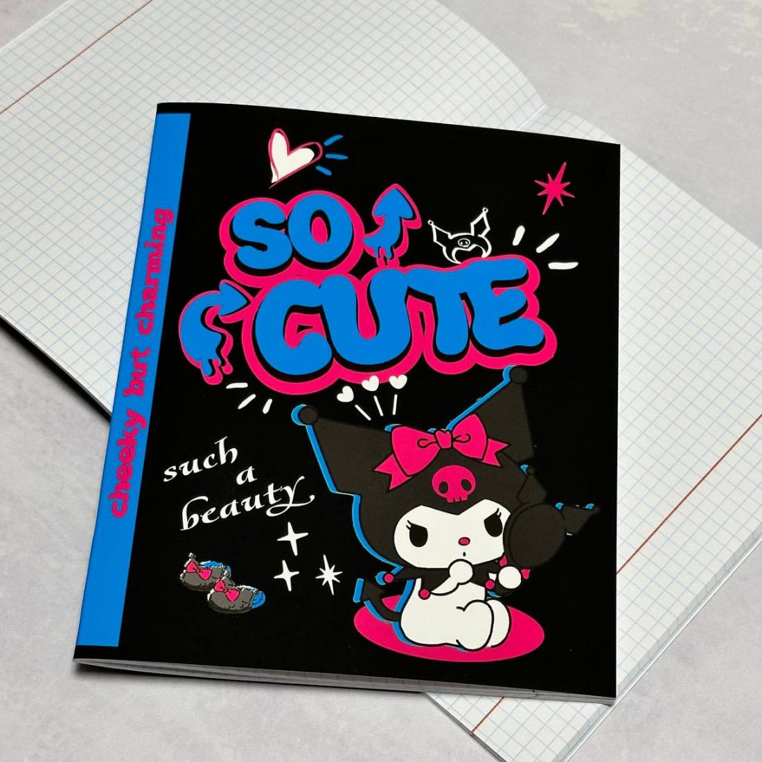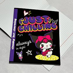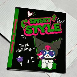 Внутренний блок с разлиновкой в клетку с полями и обложка скреплены с помощью металлический скобы. Объем - 48 листов. Формат - А5.