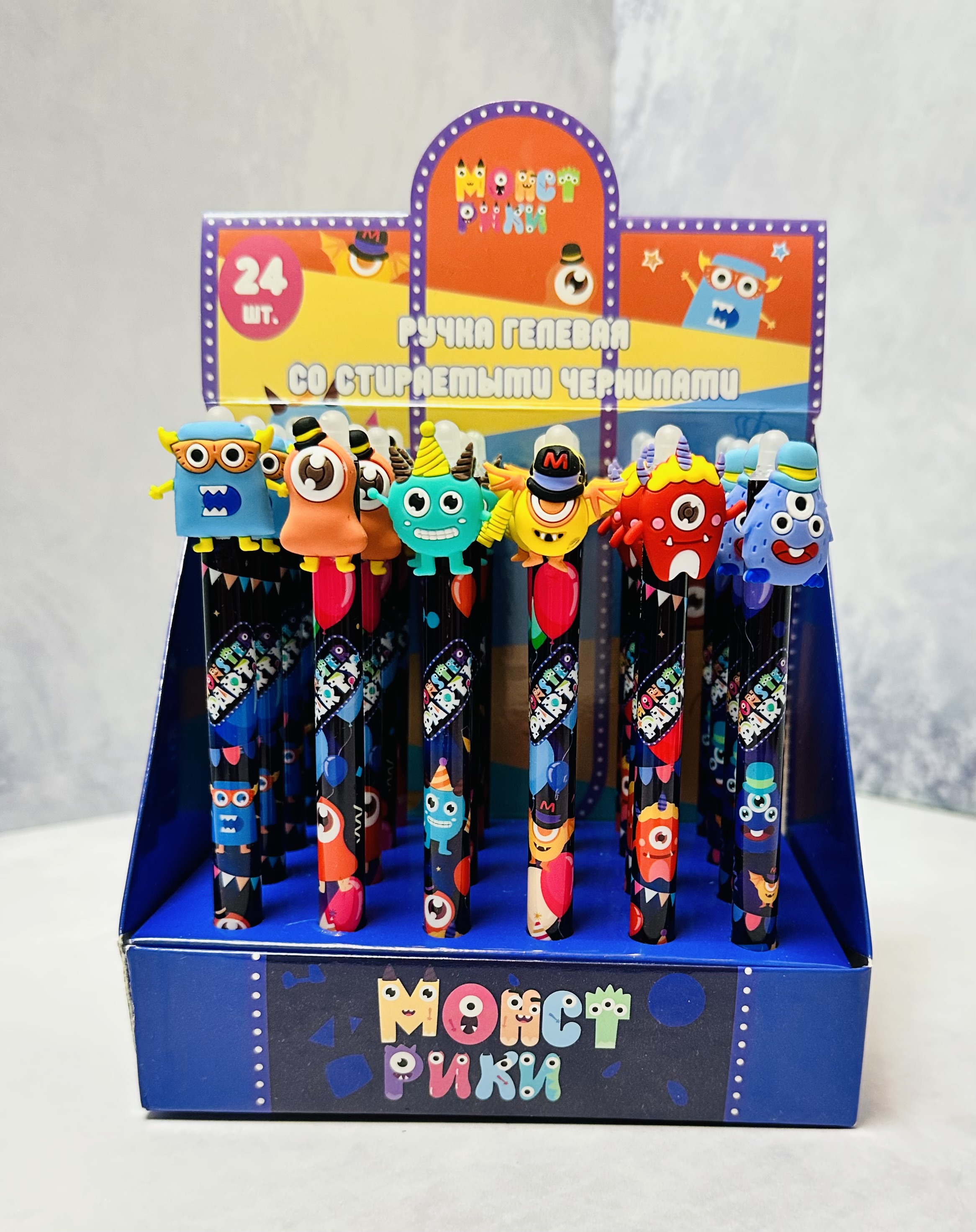 Гелевые ручки хорошо справляются со своими основными задачами, а также дополнены приятным функционалом «Пиши-стирай». Мгновенная корректировка линий любой толщин без следов и деформации осуществляется с помощью ластика, расположенного на наконечнике. Подача стержня осуществляется путем нажатия на резиновую фигурку. Диаметр пишущего узла – 0,5 мм. Цвет чернил – синий.