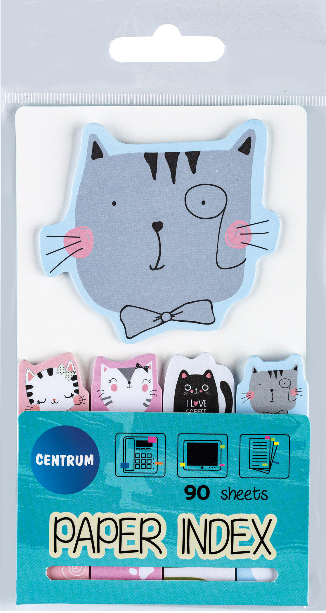 Компания Centrum представляет веселые листки – индексы для заметок. Теперь Вы и Ваши дети точно не забудете о запланированных делах, оригинальный формат и яркие цвета привлекут внимание, заметно преобразив рабочее пространство. Клейкие индексные стикеры удобны для маркировки абсолютно любой поверхности. Бумага с легкостью отделяется от блока, при удалении с поверхности не оставляет следов клея, благодаря чему подходит для многократного переклеивания. Бумажная поверхность позволяет использовать их для краткой записи. В новом поступлении два набора клейких индексов, состоящих их 8 и 4 блоков различных по дизайну. Новинки представлены в индивидуальной упаковке с европодвесом.