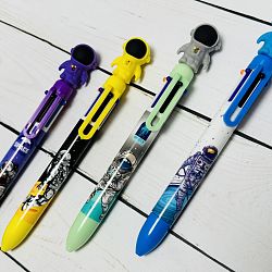 Автоматическая модель удобна в использовании, экономит место в пенале или на рабочем столе, позволяет всегда иметь под рукой набор основных цветов для письма и выделения записей. Пластиковый круглый корпус дополнен резиновой фигуркой, не утяжеляющей ручку.