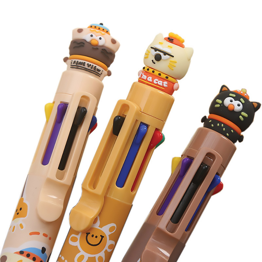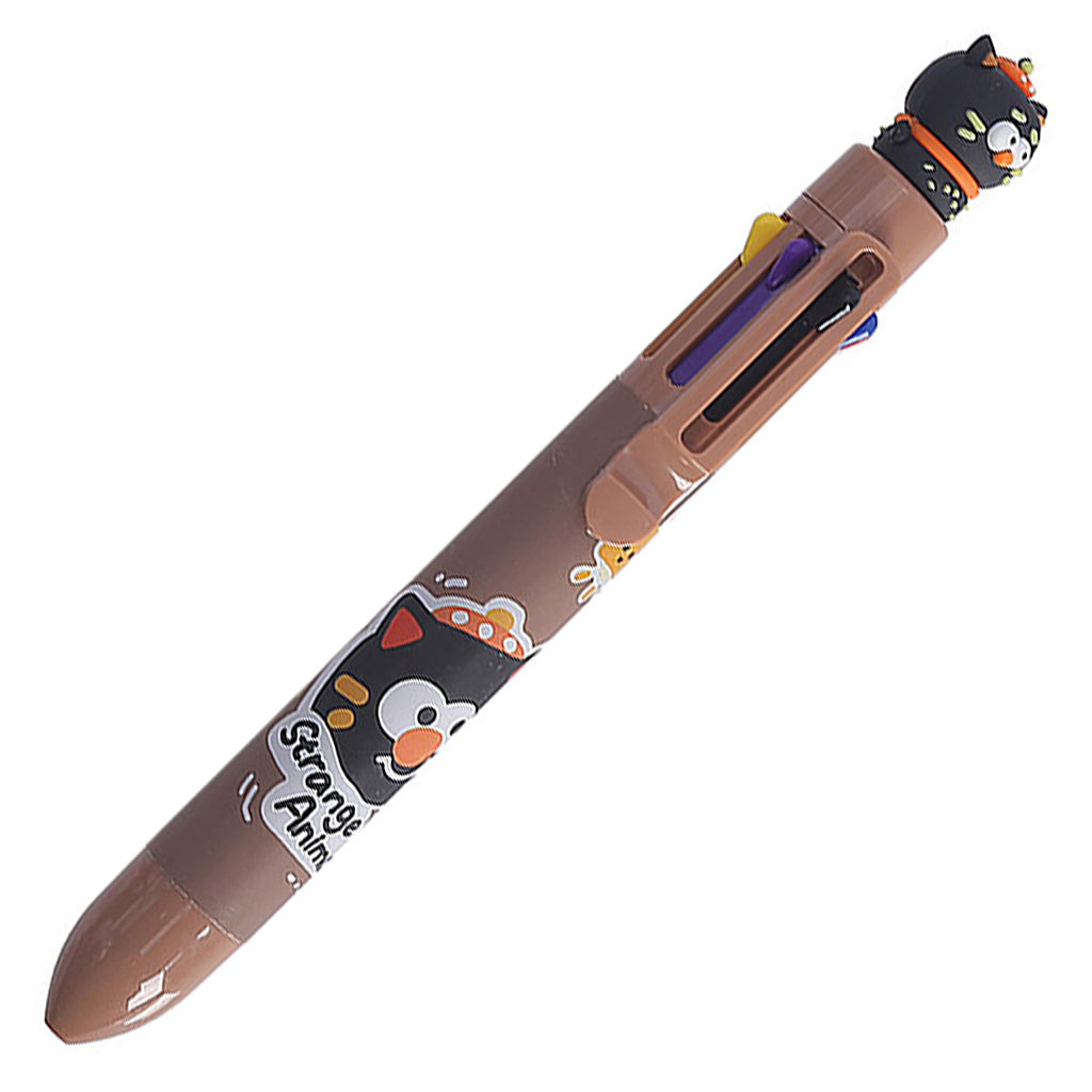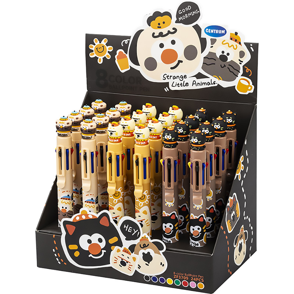 Автоматическая модель удобна в использовании, экономит место в пенале или на рабочем столе, позволяет всегда иметь под рукой набор основных цветов для письма и выделения записей. Пластиковый круглый корпус дополнен резиновой фигуркой, не утяжеляющей ручку. Модель содержит 8 цветов с толщиной пишущего узла 0,5 мм. Автоматический нажимной механизм, обеспечивает плавную подачу необходимого стержня. Разноцветные чернила оптимальной консистенции равномерно распределяются при письме, мгновенно высыхая и не размазываясь. Металлический наконечник не деформирует бумагу, обеспечивает плавное и мягкое скольжение, оставляя ровные и четкие линии. Новинка представлена в картонной коробке, удобной для транспортировки и хранения. Для удобства розничных продаж и возможности выбора, упаковка трансформируется в демонстрационный стенд.