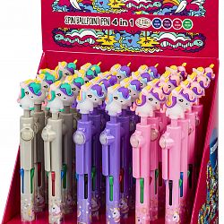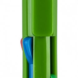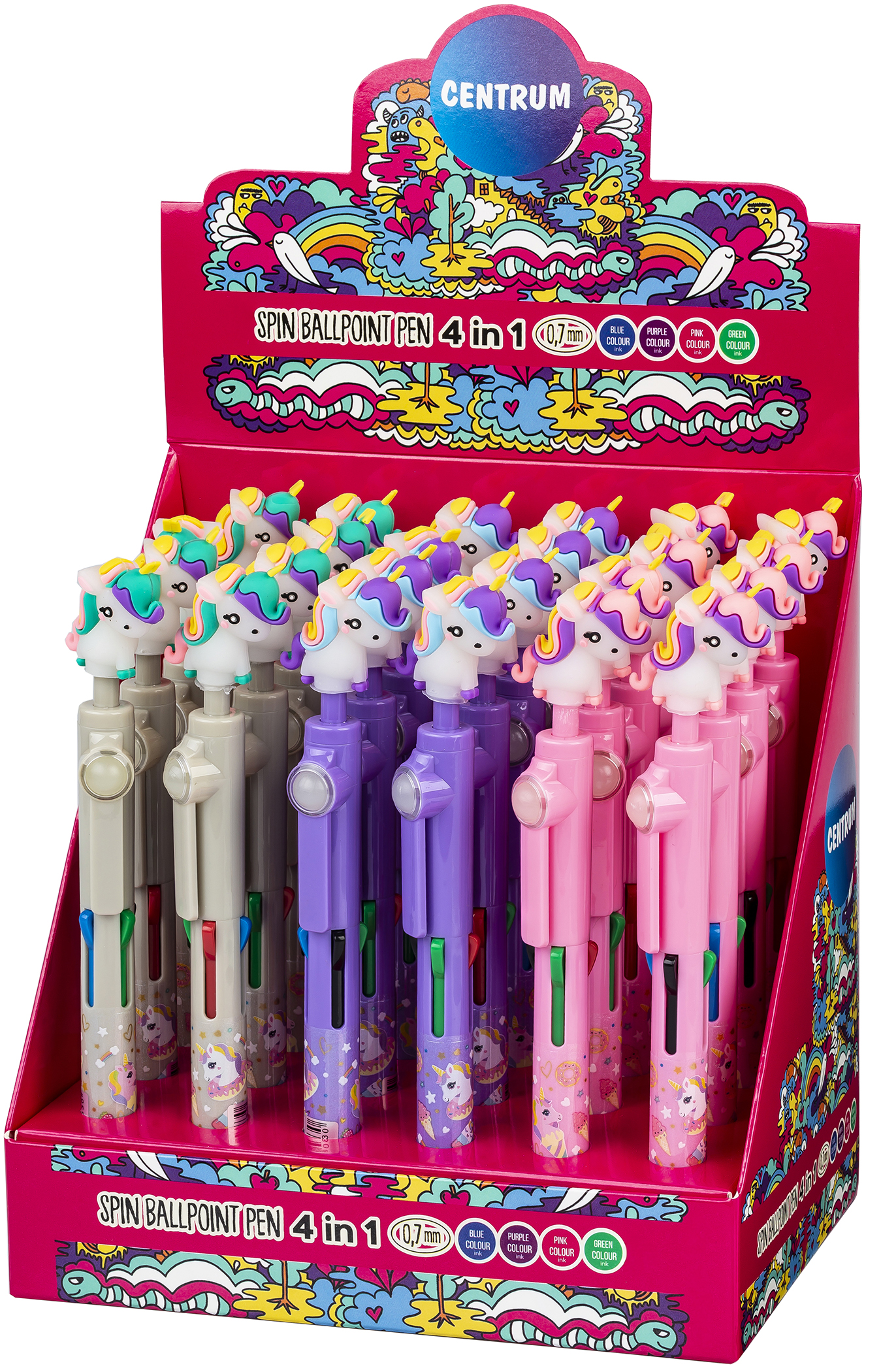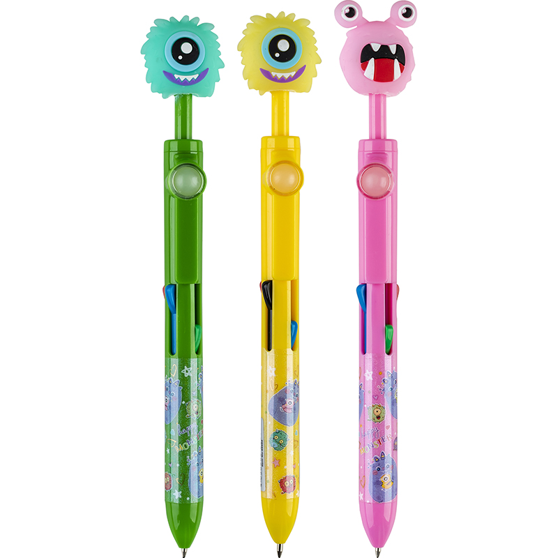 Автоматические модели удобны в использовании, экономят место в пенале или на рабочем столе, позволяют всегда иметь под рукой набор основных цветов для письма и выделения записей. Пластиковый круглый корпус дополнен резиновой фигуркой, не утяжеляющей ручку. Прорезиненные вращающиеся фигурки не утяжеляют ручки при письме. Модели содержат 4 основных цвета (черный, синий, красный, зеленый.) с оптимальной толщиной пишущего узла 0,7 мм. Автоматический нажимной механизм, обеспечивает плавную подачу необходимого стержня. Разноцветные чернила оптимальной консистенции равномерно распределяются при письме, мгновенно высыхая и не размазываясь. Металлический наконечник не деформирует бумагу, обеспечивает плавное и мягкое скольжение, оставляя ровные и четкие линии. Новинки представлены в картонной коробке, удобной для транспортировки и хранения. Для удобства розничных продаж и возможности выбора, упаковка трансформируется в демонстрационный стенд.