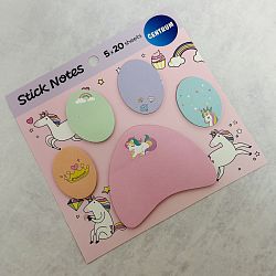 Арт.: 89816. Клейкие стикеры «Единорог». 4 вида стикеров 37*27 мм. По 20 лтстов + 1 блок стикеров большего размера 70*60 мм. 20 листов.