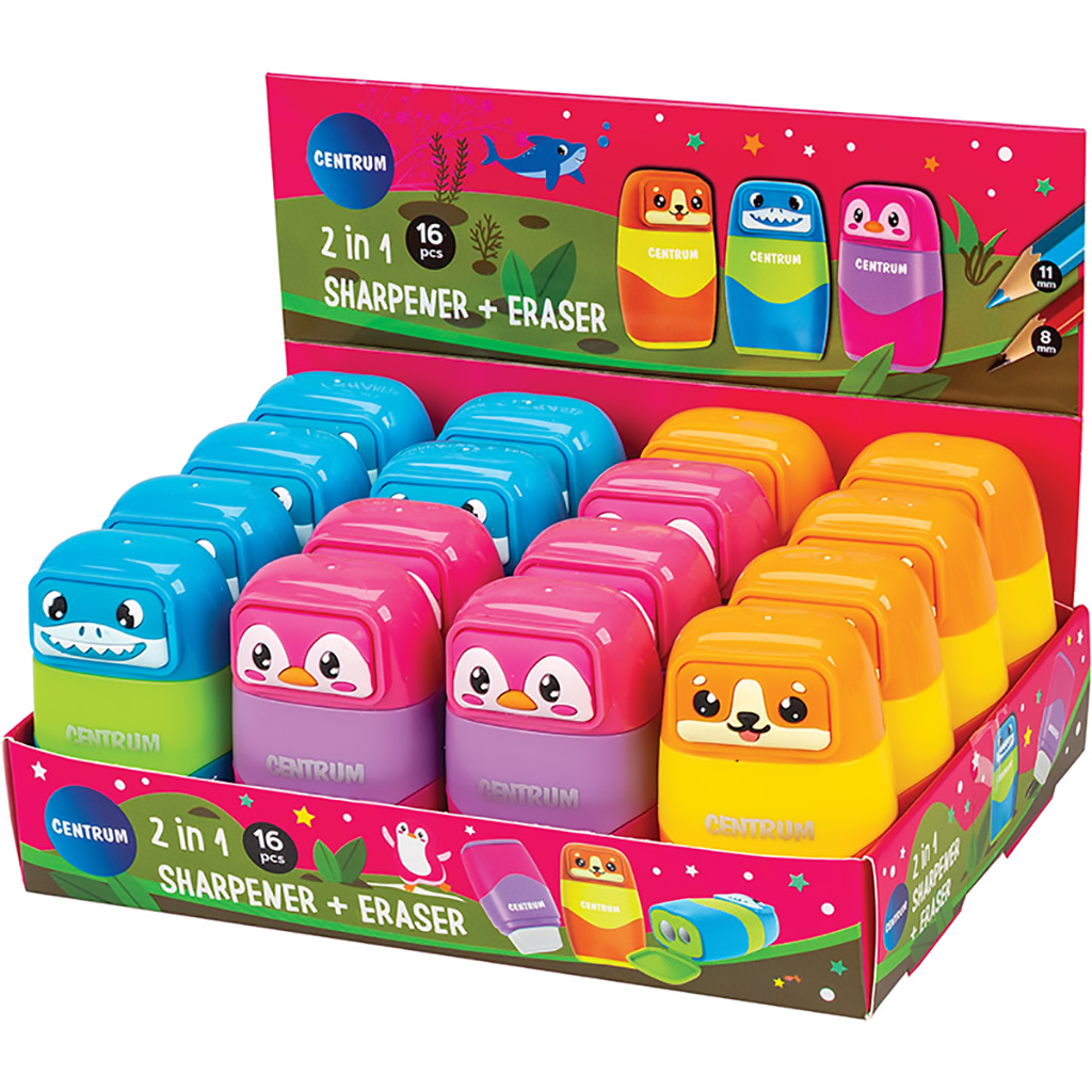 Яркая точилка, дополненная ластиком, существенно сэкономит место в пенале и не отнимет дополнительного времени на поиски нужного предмета. Изделие оснащено острыми лезвиями из высококачественной стали, производящую быструю и точную заточку, без следов срезов и повреждений. Пластиковая двойная точилка, рассчитана для затачивания стандартных и утолщенных карандашей.