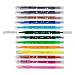 Палитра из 12 цветов открывает простор для творчества. Разнообразие оттенков позволяет добиваться более реалистичных рисунков, тем самым, достигая новых высот в работе. Фломастеры представлены в удобной упаковке со специальными отсеками для каждого фломастера.