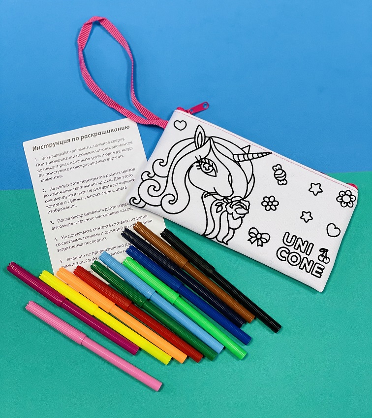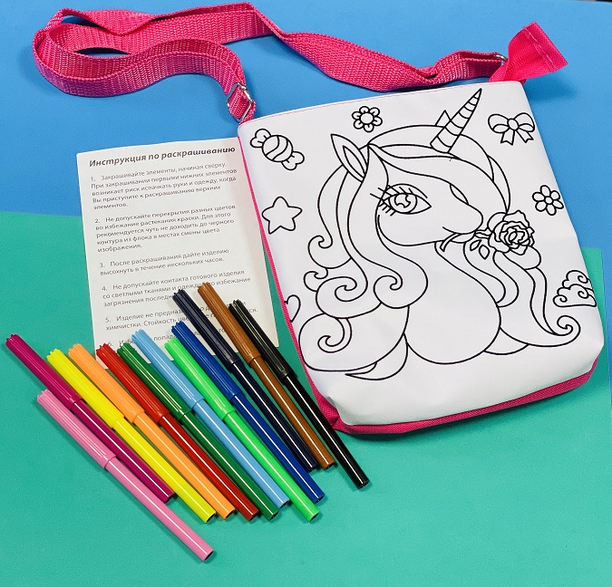 С наборами для раскрашивания сумочек Centrum "Единорог" каждая девочка сможет почувствовать себя настоящим дизайнером. Проявив немного фантазии и творческого мастерства, Вы получите уникальный аксессуар с неповторимым дизайном. Процесс создания абсолютно не сложен, необходимо закрасить белые участки поверхности , далее оставить ее до полного высыхания. Контур выполнен с помощью флока, нанесенного на ткань, создавая эффект бархата. Оптимальная толщина контура препятствует выходу за границы, а шероховатая поверхность предотвращает растекание фломастеров, благодаря чему с данным творческим процессом справится даже самый юный художник. Сумочки выполнены из полиэстера. В каждом наборе предусмотрены 12 фломастеров для раскрашивания. В новом поступлении: