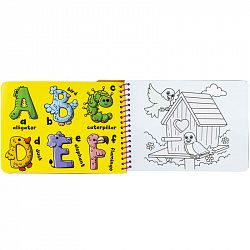 Развивающие раскраски на водной основе скрасят досуг малыша и в игровой форме научат буквам и цифрам. Легкие и разнообразные иллюстрации, словно по волшебству оживают, наполняясь цветом. Достаточно маркера и воды. Извлеките из маркера специальный резервуар и наполните его водой. Для удобства, в каждой раскраске имеется подробная инструкция. Не обязательно соблюдать контурные границы, краска не растечется. Рисуйте любым способом, но помните, что после полного высыхания, иллюстрация снова приобретет первоначальный вид и цвет исчезнет. Не рекомендуется рисовать на всех или нескольких страницах одновременно, необходимо дождаться полного высыхания и переходить к следующей иллюстрации. С водной раскраской можно не беспокоиться о том, что малыш может что-то испачкать, ее удобно брать с собой в поездки. Удобный формат и спиральное крепление страниц из плотного картона исключают намокание и деформацию.