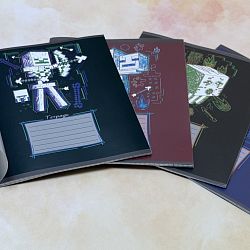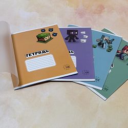 Мягкий переплет и внутренний блок в клетку с полями скреплены с помощью металлической скобы. На обратной стороне расположена справочная информация. Объем – 12,24 листа. Дизайн в ассортименте.
