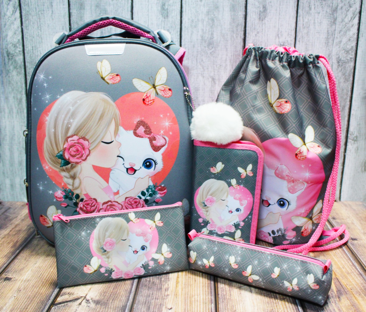 В новом поступлении каркасные рюкзаки для учащихся начальных классов, мешки для обуви и пеналы в аналогичных дизайнах. Обновленный ассортимент пестрит оригинальными и яркими расцветками, а так же актуальными принтами. Прочные материалы и качественная фурнитура обеспечивают надежность и долговечность моделей. Полноцветная печать изображений обеспечивает качественное нанесение рисунка, устойчивое к выцветанию и деформации. Удобные, практичные, а главное долговечные рюкзаки соответствуют всем заявленным нормам качества и безопасности. Изготовлены с максимальной заботой о детском здоровье, оснащены эргономичной жесткой спинкой на мягкой подкладке.