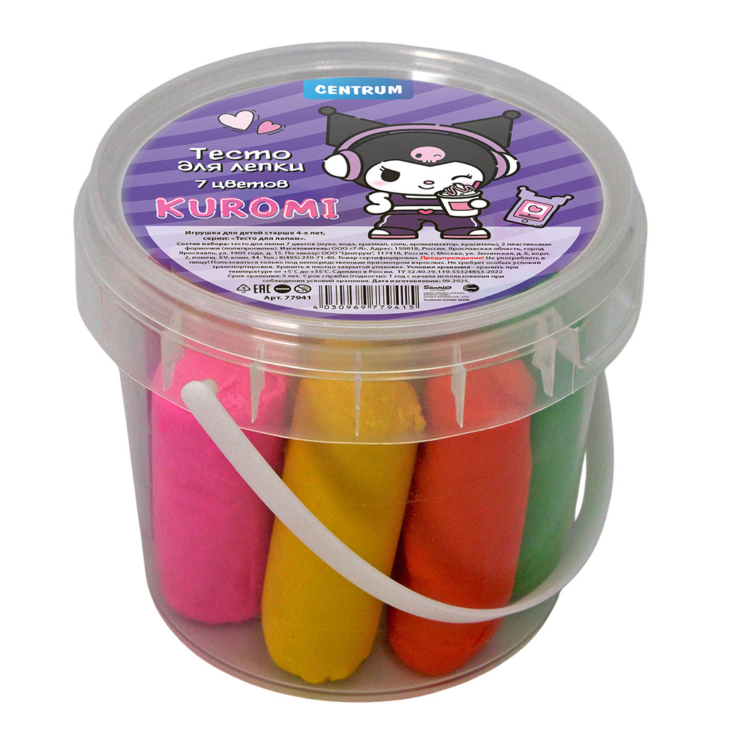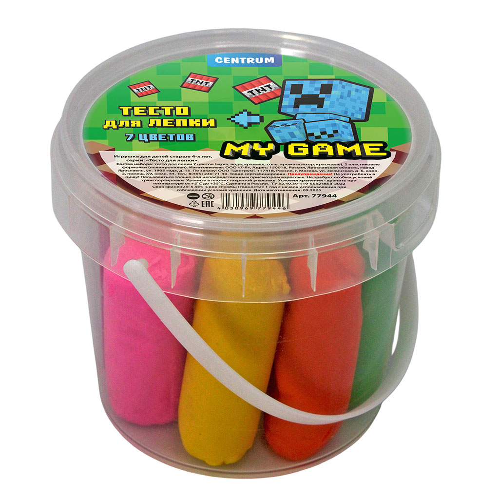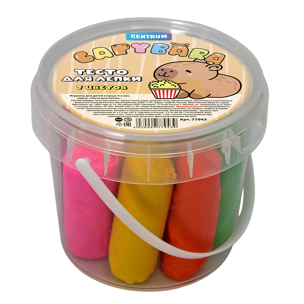 Тесто мягкое, эластичное и приятное на ощупь. Материал не крошится, легко скрепляется между собой. Не липнет к рукам и не оставляет следов. Имеет приятный запах, безопасен для детей. Пластиковое ведерко обеспечит удобство при транспортировке и хранении, а также продлит срок службы материала. В наборе – тесто для лепки (7 цветов*30 грамм; 2 формочки)