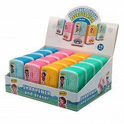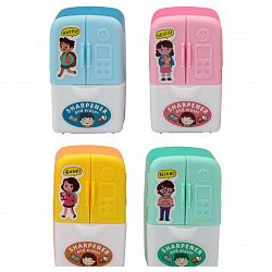Яркие точилки, дополненные ластиками, существенно сэкономят место в пенале и не отнимут дополнительного времени на поиски нужного предмета. Изделия оснащены острыми лезвиями из высококачественной стали, производящую быструю и точную заточку, без следов срезов и повреждений. В ассортименте пластиковые одинарные и двойные точилки, рассчитанные для затачивания стандартных и утолщенных трехгранных, шестигранных, круглых, чернографитных и цветных пластиковых и деревянных карандашей.