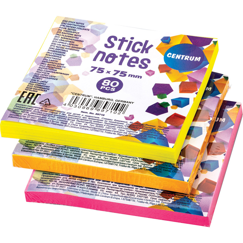 С бумажными стикерами от Centrum Вы точно не забудете о запланированных делах. Яркие, сочные неоновые цвета привлекают внимание, заметно преображая поверхность. Цветовое оформление акцентирует максимум внимания к конкретной записи.
