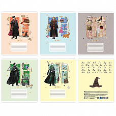 76992 Тетрадь Гарри Поттер, формат А5, на скрепке, 24 листа, клетка с полями, внутренний блок офсет 60-65 г, 92% белизна, обложка мелованный картон + ВД-лак, 5 дизайнов в спайке