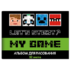 Новинка! 78390 Альбом для рисования My Game, А4, 32 листа, на скрепке, мелованная обложка 190 гр/м2, белизна блока 100%, плотность блока офсет 100г/м2