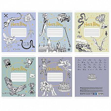 76565 Тетрадь Гарри Поттер, формат А5, на скрепке, 18 листов, линейка с полями, внутренний блок офсет 60-65 г, 92% белизна, обложка мелованный картон + ВД-лак, тиснение золотой фольгой, 5 дизайнов в спайке