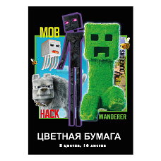 Новинка! 78592 Бумага цветная My Game, немелованная (газетка) односторонняя, на скрепке, обложка мелованная 150гр. 16 листов, 8 цветов, плотность блока 45-48,8м2