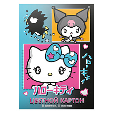 Новинка! 78250 Картон цветной Hello Kitty&friends немелованнный, односторонний, 8 листов, 8 цветов в папке