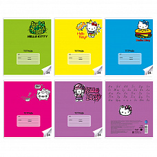 74545 Тетрадь Hello Kitty, формат А5, на скрепке, 24 листа, клетка с полями, внутренний блок офсет 60-65 г, 92% белизна, обложка мелованный картон + ВД-лак, 5 дизайнов в спайке