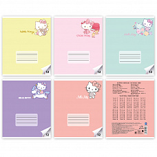 74543 Тетрадь Hello Kitty формат А5, 12 листов, на скрепке, линейка, с полями, обложка мелов картон 190 г/м2, блок офсет 60-65 г, белизна 92%