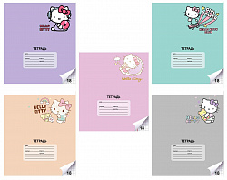 74544 Тетрадь Hello Kitty, формат А5, на скрепке, 18 листов, клетка с полями, внутренний блок офсет 60-65 г, 92% белизна, обложка мелованный картон + ВД-лак, 5 дизайнов в спайке