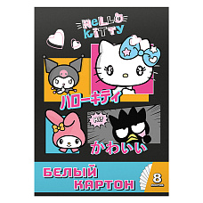 Новинка! 78619 Картон белый Hello Kitty&friends 8 листов немелованный, односторонний, размер 205*294, в папке