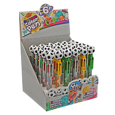 Новинка! 78166 Ручка шариковая автоматическая "Футбол", 0,7 мм, 6 цветов, дисплей бокс