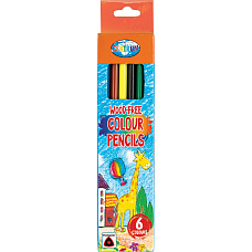 86140 Карандаши цветные пластиковые 6 цветов Giraffe, длина 177 мм, трехгранные, в картонной упаковке с европодвесом