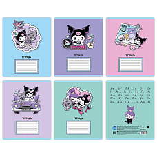76979 Тетрадь Kuromi, формат А5, на скрепке, 18 листов, клетка с полями, внутренний блок офсет 60-65 г, 92% белизна, обложка мелованный картон + ВД-лак, 5 дизайнов в спайке