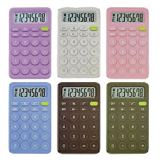 Новинка! 78175 Калькулятор 8-разрядный 142х82х10 мм, 7 цветов в ассортименте (черный, белый, розовый, синий, светло-зеленый, темно-зеленый, фиолетовый)