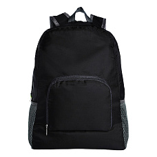 75559 Рюкзак складной, 1 основное отделение, карман для мелочей внутри, карман на молнии спереди, регулируемые лямки, 2 боковых сетчатых кармана, светоотражающие элементы, материал ткань, размер 43*32 см, цвет черный