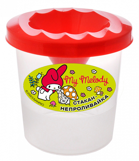 Стакан - непроливайка "My Melody" предназначен для использования на художественных занятиях в школе, детском саду, специализированных учреждениях и дома. Изготовлен из качественного нетокcичного прозрачного пластика. Плотно прилегающая цветная крышка, исключает любое протекание, а специальное отверстие предотвращают проливание воды при падении стакана. Для удобного размещения кистей, на поверхности крышки расположены углубления. Цвета крышек в ассортименте.