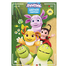 Новинка! 78398 Картон цветной Лунтик немелованнный, односторонний, 8 листов, 8 цветов в папке
