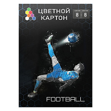 Новинка! 78617 Картон цветной Футбол немелованнный, односторонний, 8 листов, 8 цветов в папке