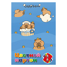 Новинка! 78616 Картон цветной Капибара немелованнный, односторонний, 8 листов, 8 цветов в папке